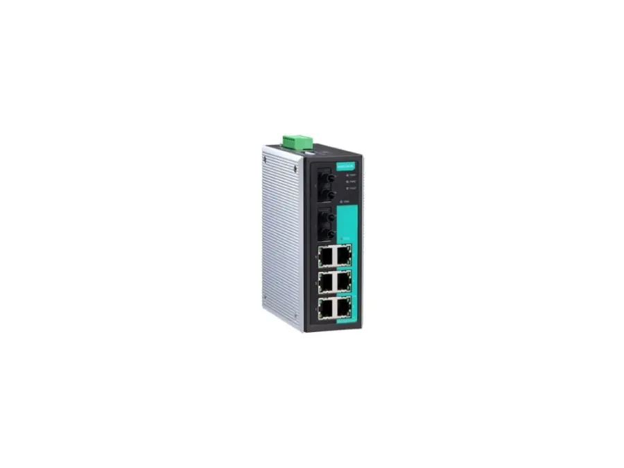 EDS-308-MM-ST-T – 6× 10/100 RJ45 + 2× 100BaseFX MM (ST), QoS/storm (DIP), relé alarm, duální 12/24/48 VDC (provoz 9,6–60 VDC), −40…75 °C