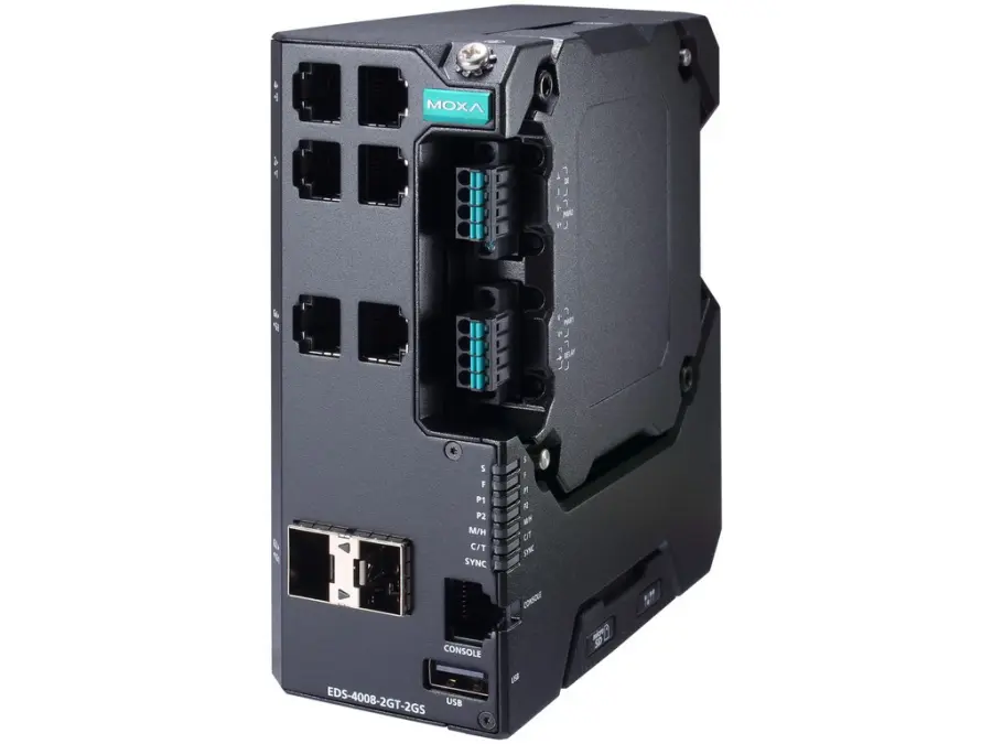 EDS-4008-2GT-2GS-LV-T: 4× 10/100 + 2× 1G RJ‑45 + 2× 1G SFP; 12/24/48 VDC power supply (redundant); −40…+75 °C; IEC 62443-4-2; Turbo Ring/Chain, RSTP