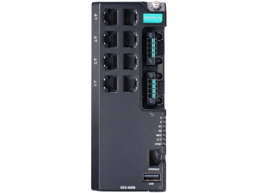 EDS-4008-LV: L2 managed, 8× 10/100BaseT(X); 12/24/48 V DC power supply (redundant); −10…+60 °C; IEC 62443‑4‑2; Turbo Ring/Chain, RSTP