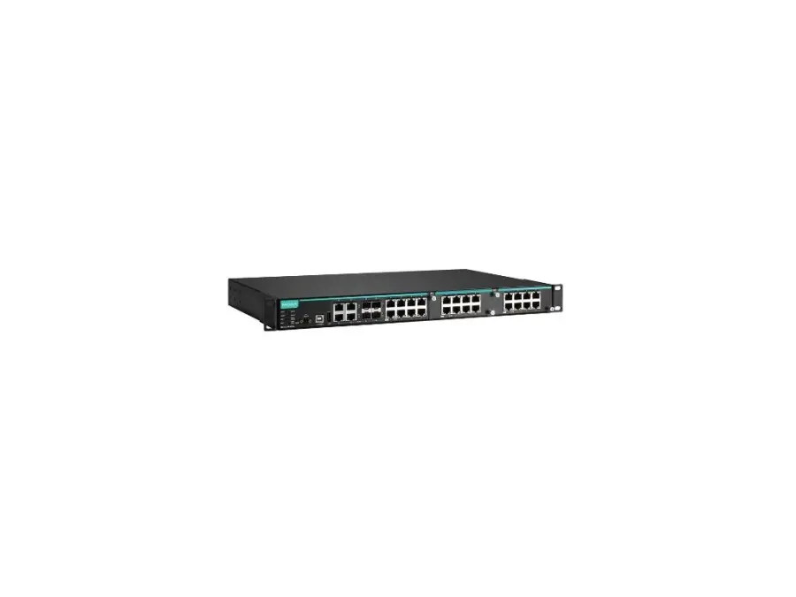 IKS-6728A-8PoE-4GTXSFP-48-T: **24× 10/100Base‑T(X)** (of which **8× PoE/PoE+ PSE**) + **4× combo 1G RJ‑45/SFP**; 48 V DC (isolated); −40…+75 °C